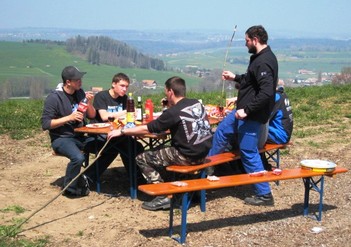 La météo nous a gratifiés de températures nettement plus clémentes pour la deuxième séance, et les "anciens" ont eu tôt fait de décider d'une grillade pour dîner, et c'est ainsi que nous pûmes profiter de notre situation idyllique sur les hauts de Vuisternens.